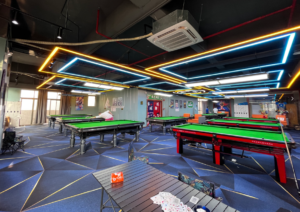 自助球房的空间规划有个原则:让顾客“无需求助”。我参照施派克厂家提供的布局方案,将 80 平米划分为 3 个独立球区,每个区域配备扫码储物柜和自助售货机。球桌选用施派克的9尺中式八球,其耐磨台尼和静音钢库设计,即使高频使用也能保持半年无大修,大大降低了维护频率。